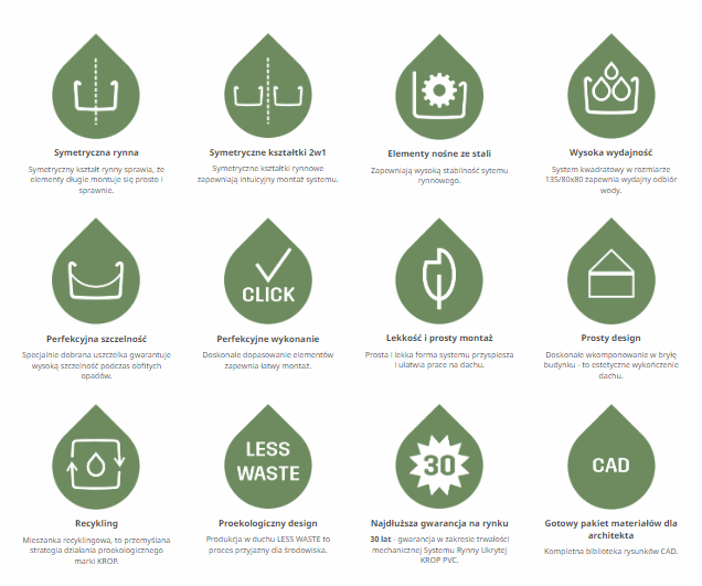 SYSTEM RYNNY KWADRATOWEJ KROP to bezpieczne rozwiązanie dla Klientów szukających zrównoważonych rozwiązań do swoich ekologicznych inwestycji.